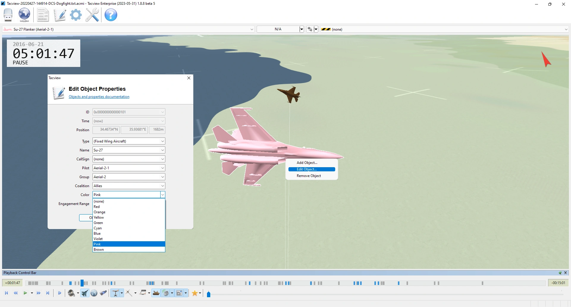 Starting with Tacview 1.8.8 beta 5, colors may be customized and new colors may be added, as follows: